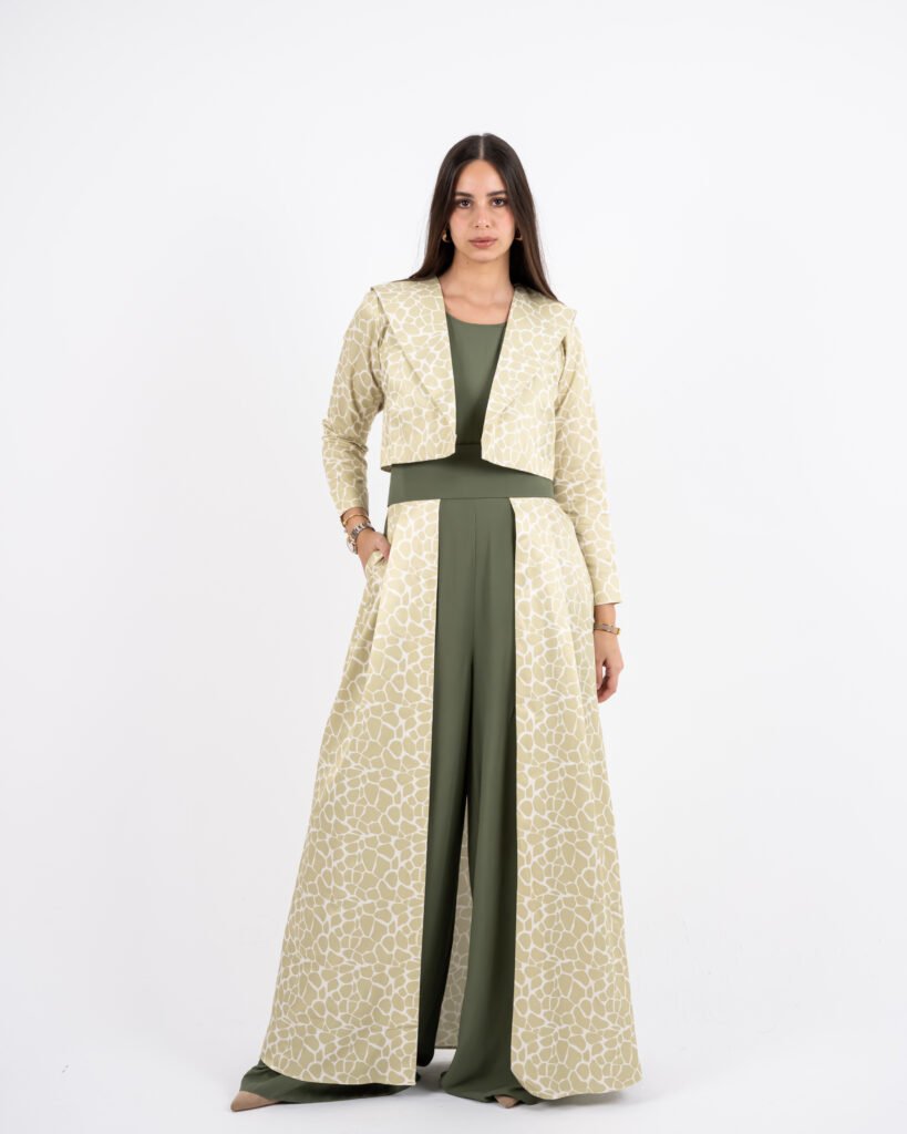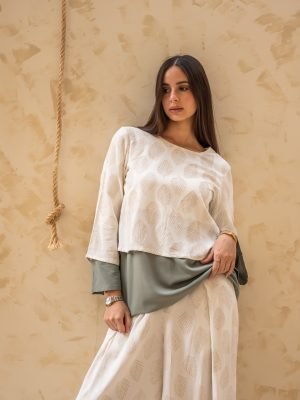 بلوزة بطبقتين باللون الأخضر ونقشة أوراق الشجر