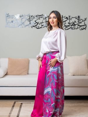 بنطلون واسع ساتان مموج مع تنورة ملونة