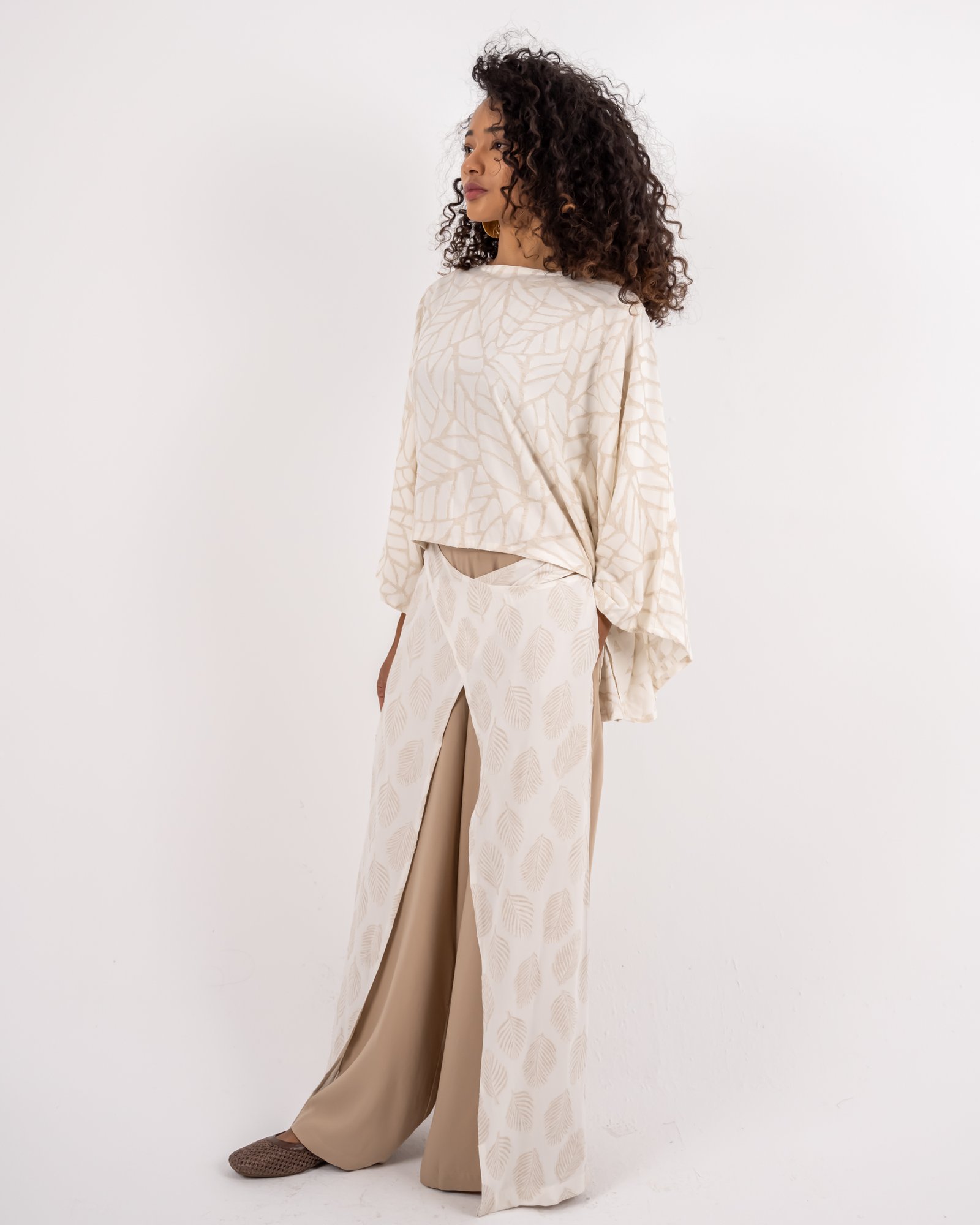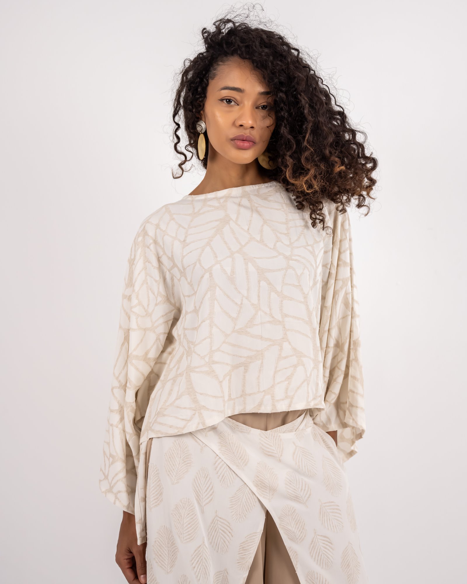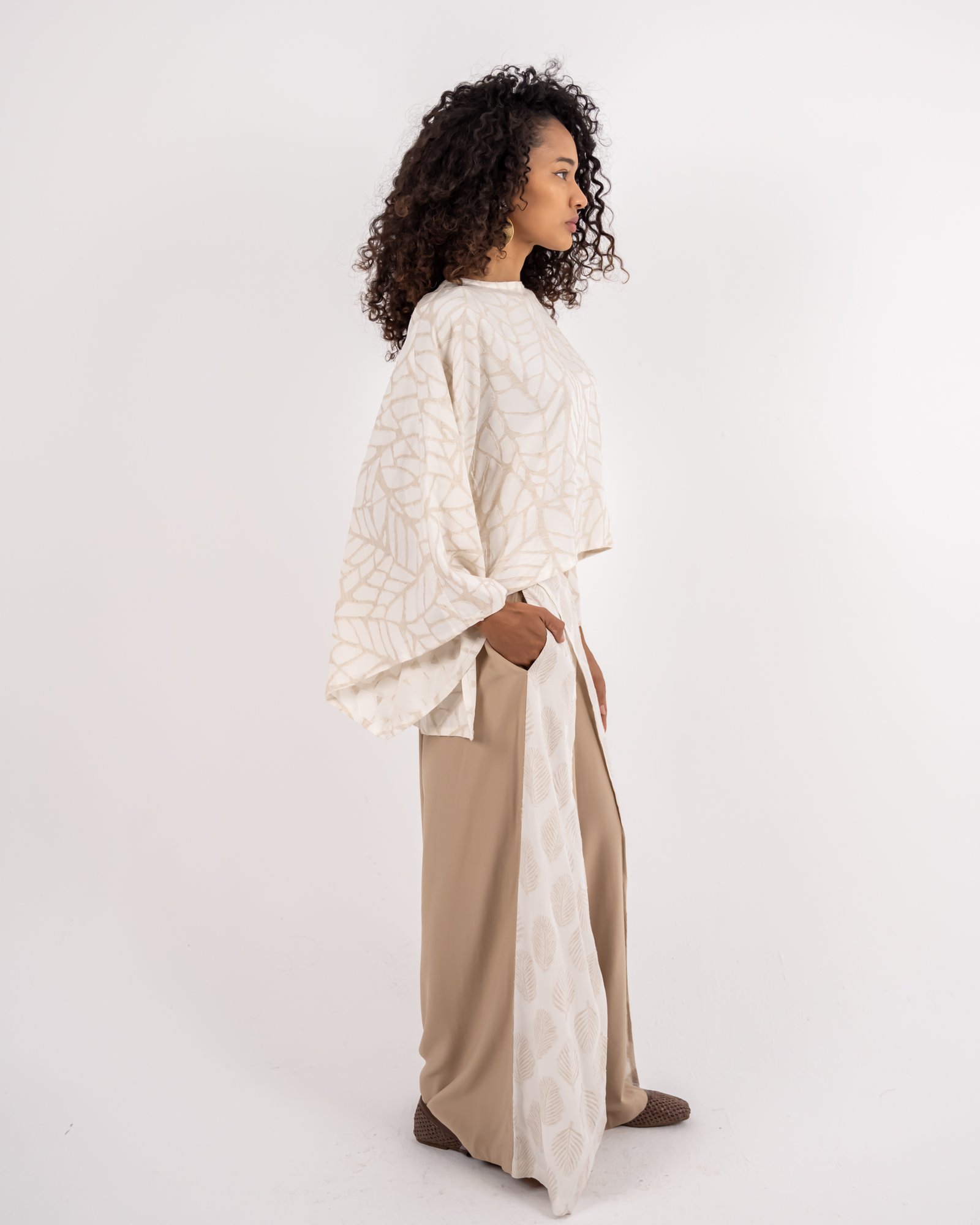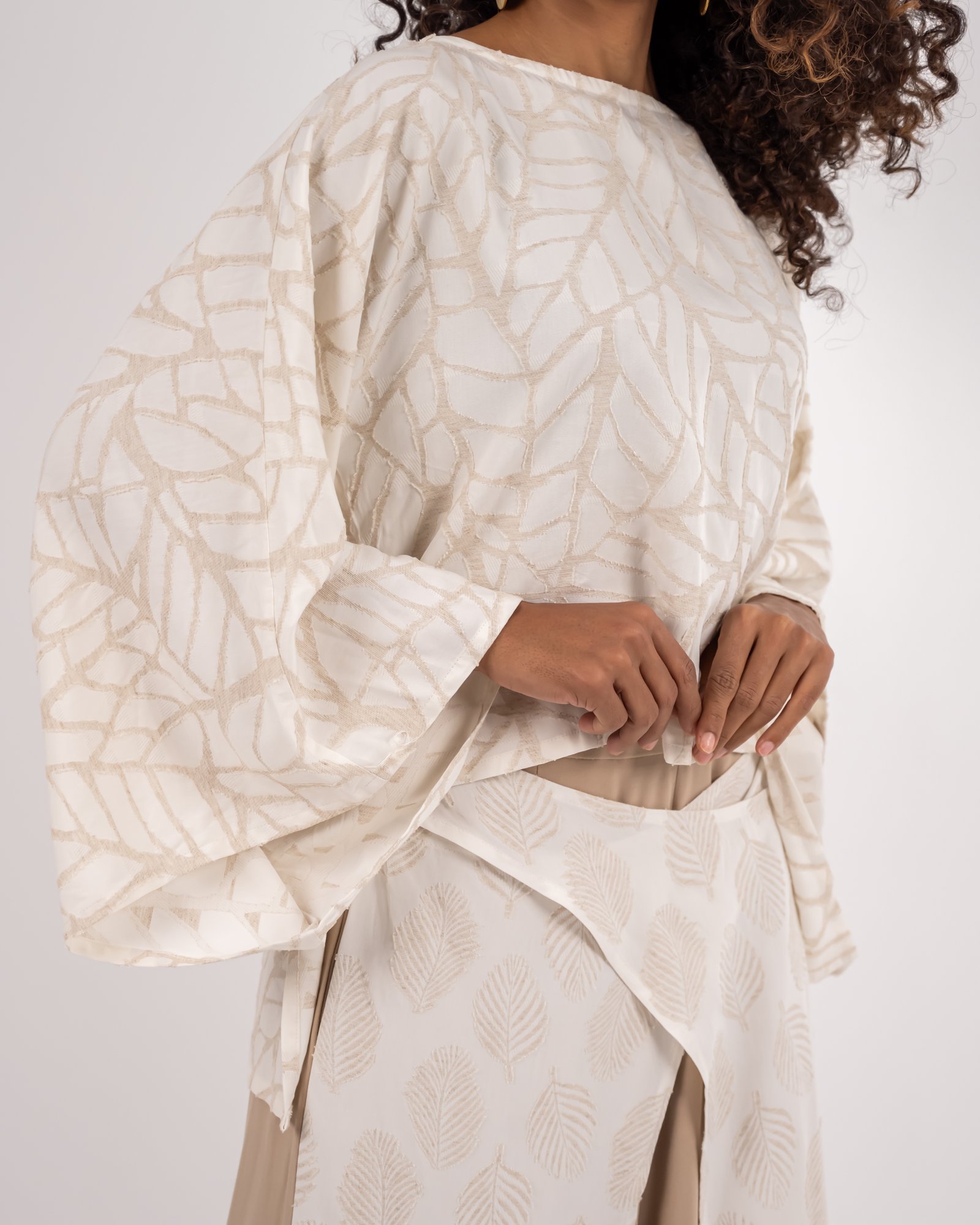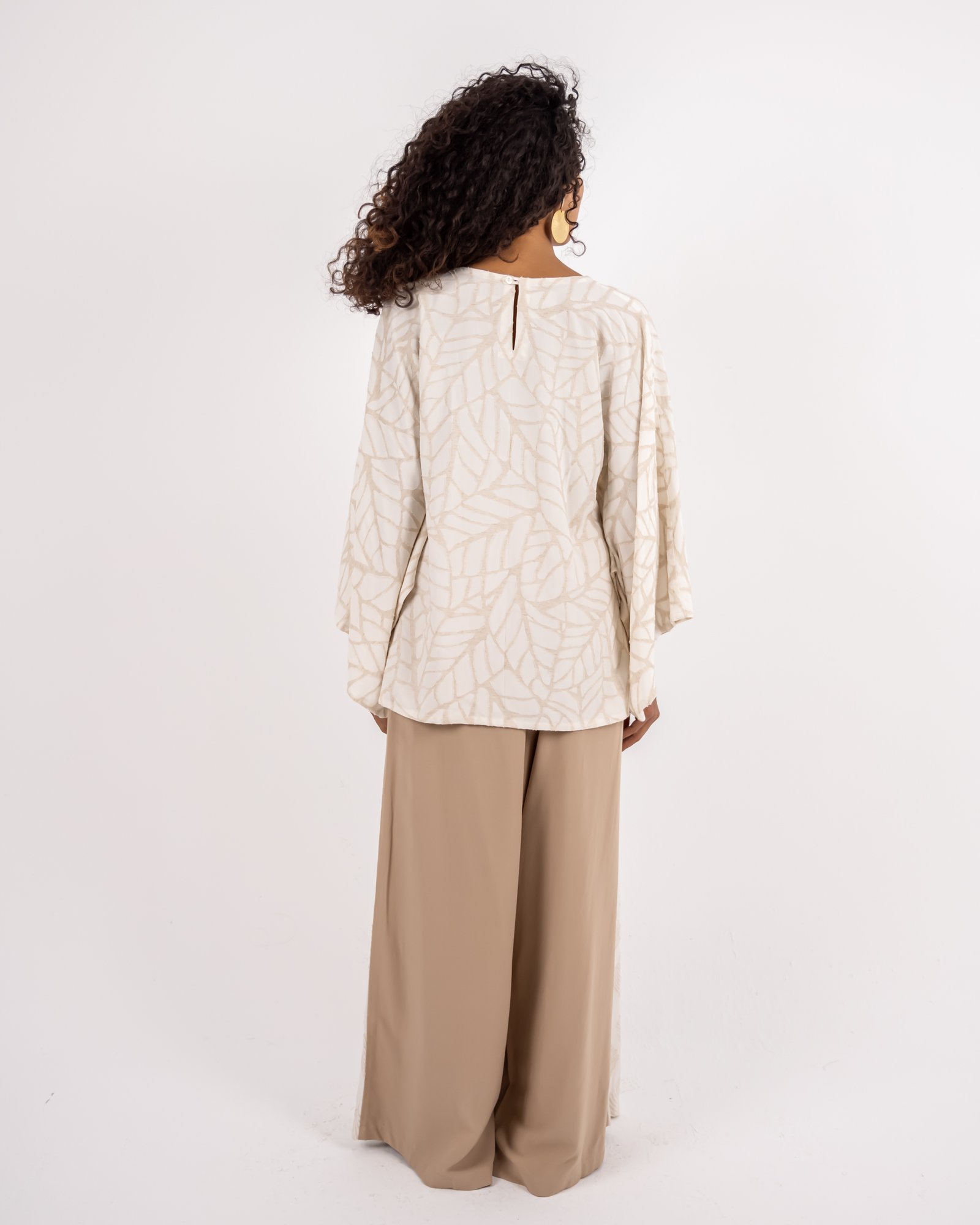 •قطعة أساسية أنيقة تجمع بين الراحة والرقي، تتميّز بنقشة مستوحاة من الطبيعة تضيف لمسة ناعمة وفريدة. قصّتها الواسعة وأكمامها الانسيابية تمنحك حركة راقية. مثالية للإطلالات النهارية أو المسائية، وتعكس الأناقة العصرية المحتشمة.